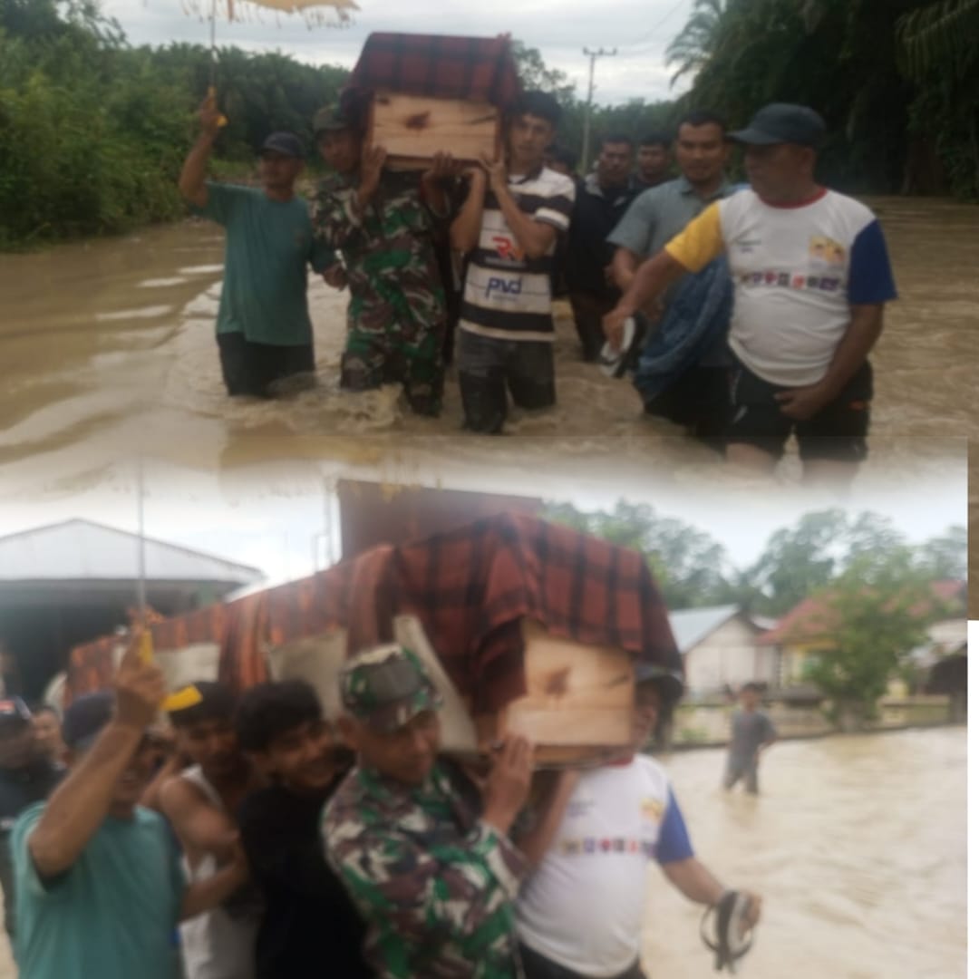 Matalensa || Aceh Barat – Aksi heroik ditunjukkan oleh Babinsa Koramil 04/Mrb Kodim 0105/Abar Serka Surya Kusmoro yang gerak cepat dan menerabas banjir guna mengevakuasi jenazah Almarhumah Sarimas (72) salah satu warga binaan yang meninggal dunia karena sakit di Desa Pasi Mesjid Kecamatan Meureubo, Jum’at (28/11/2025)