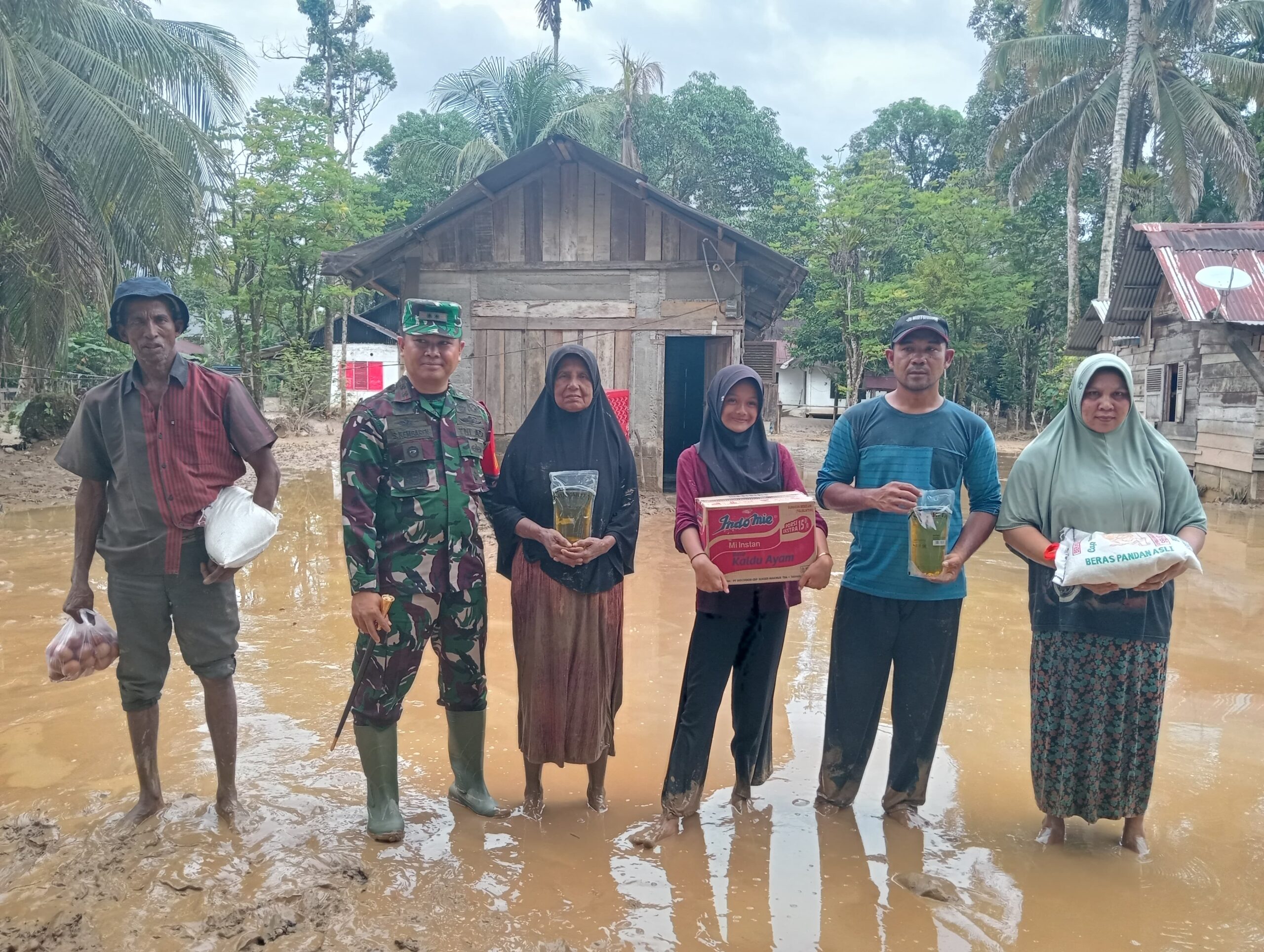 Matalensa || Aceh Barat – Sebagai upaya nyata membantu meringankan beban masyarakat yang terdampak banjir, Dandim 0105/Abar Letkol Inf S Kembaren,S.E.,M.I.P.,CFrA., langsung gerak cepat melakukan aksi sosial tanggap bencana di masa panik dengan membagikan logistik berupa Sembako kepada warga yang Rumahnya terdampak banjir secara door to door di Desa Seumantok, Lango dan Pulo Teungoh Kecamatan Pante Ceureumen, Jum’at ( 28/11/2025)