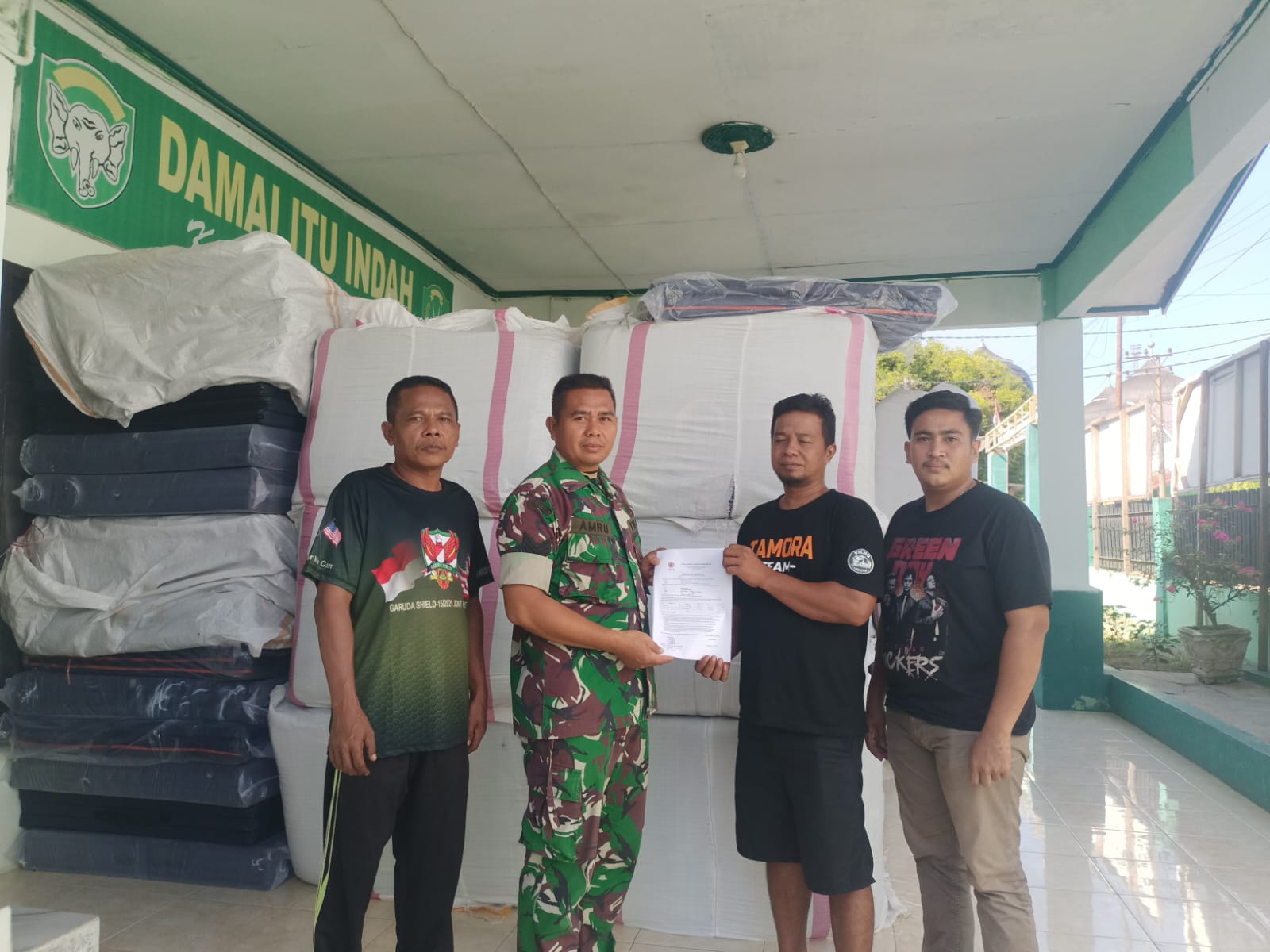 Di sela kegiatan, Danramil 03/Dewantara turut hadir memantau langsung proses tersebut. Ia menyampaikan bahwa bantuan sebanyak 286 kasur lipat ini akan segera disalurkan kepada masyarakat penghuni huntara di wilayah Kecamatan Dewantara.