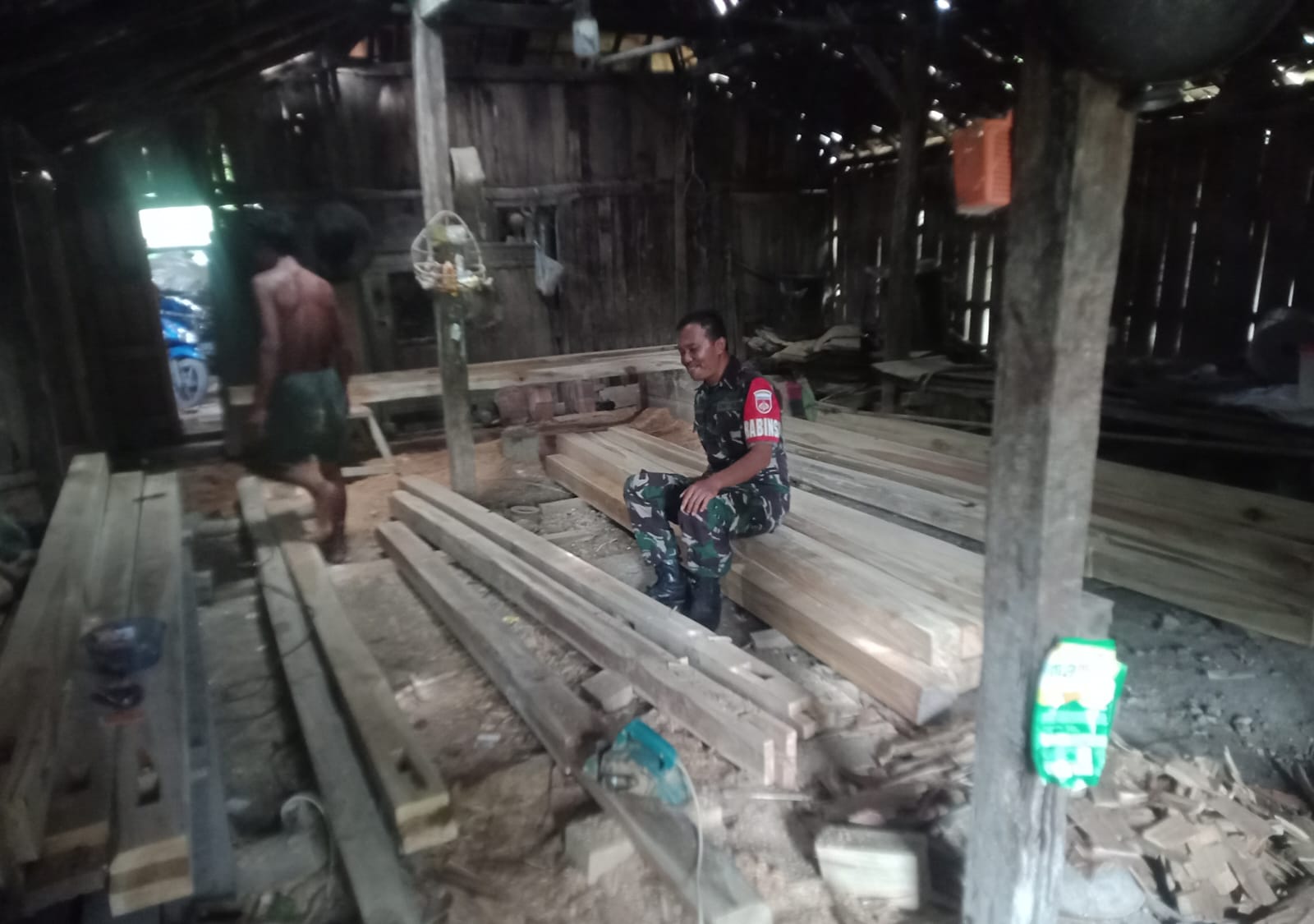 Dalam kunjungannya, Babinsa menyambangi Bapak Lasiman yang tengah menggarap tiang rumah limasan. Selain mempererat silaturahmi, Kopka Budi juga memberikan motivasi dan masukan guna mendukung pengembangan usaha pertukangan yang ditekuni warga tersebut.