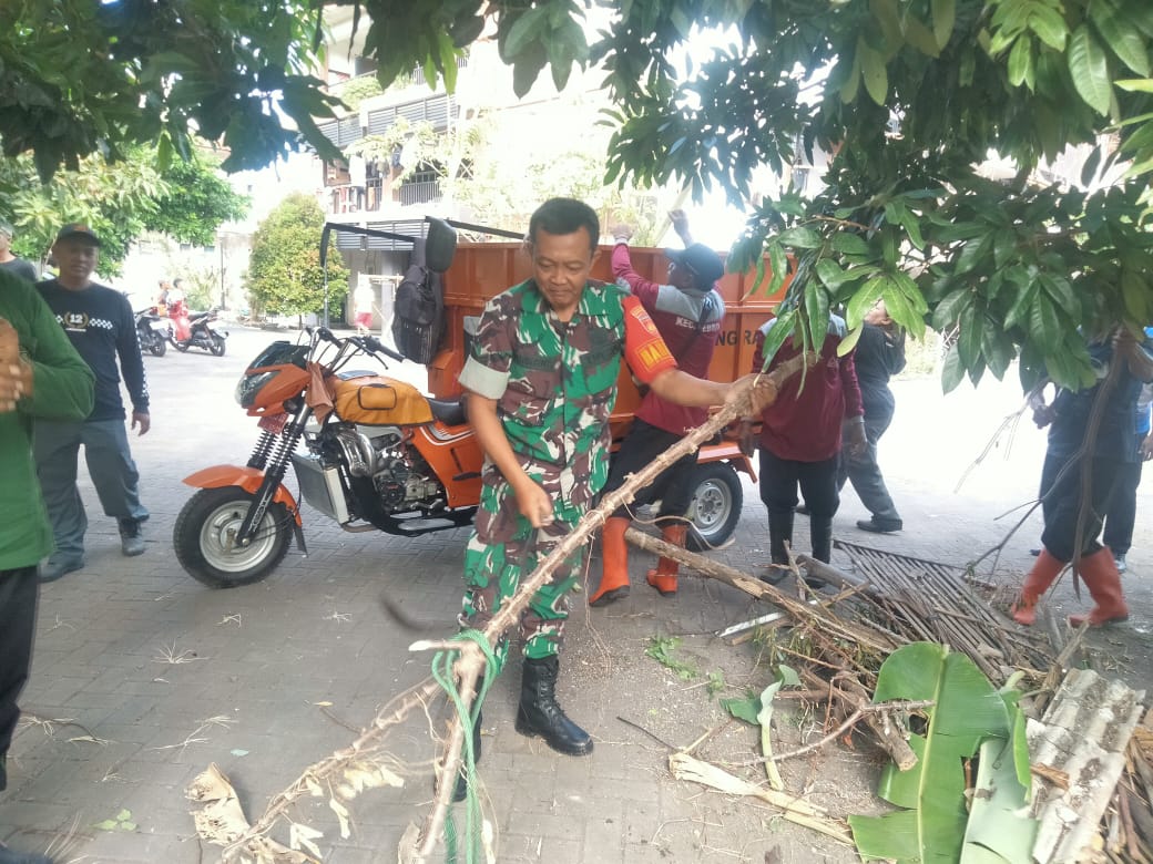 MATALENSA- Surakarta – Babinsa Kelurahan Purwodiningratan Koramil 04/Jebres kodim 0735/ Surakarta Serka Suparno bersama dengan Tim Saberling dan warga Masyarakat melaksanakan kegiatan kerja bakti membersihkan lingkungan dengan perempelan ranting-ranting pohon di lingkungan kelurahan Purwodiningratanz Kecamatan Jebres, Sabtu (17/01/2026).