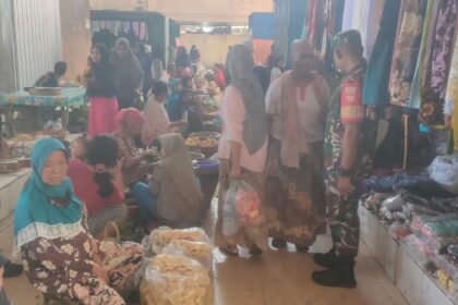 Matalensa- Sragen, Senin (01/12/2025) Babinsa Koramil 12/Gesi Kodim 0725/Sragen Sertu Ikhsan Suciato berkeliling Pasar Desa Slendro Kecamatan Gesi memantau harga kebutuhan pokok yang dijual para pedag...