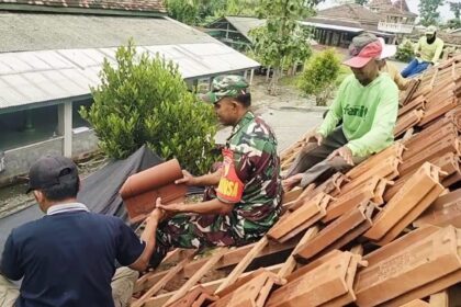Matalensa|| Blitar – Babinsa Desa Maron Koramil 0808/06 Srengat Koptu Librek, bersama warga masyarakat melaksanakan kegiatan kerja bakti membantu pemasangan atap rumah milik Bapak Mulyono di RT....