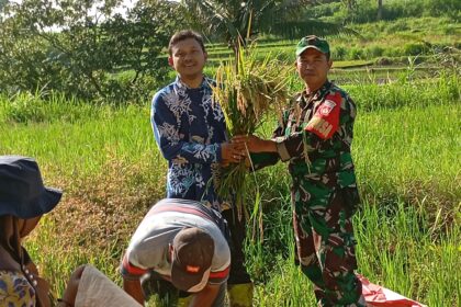 Matalensa- Boyolali – Babinsa Koramil 05/Ampel Serka Khamdan bersama Dinas Pertanian, BPP, dan PPL turun langsung ke sawah melakukan pengubinan padi di Dukuh Kerep, Desa Ngampon, Kecamatan Ampel, Ming...