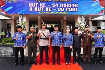 Matalensa || Blitar – kepala Staf Kodim 0808/Blitar Mayor Inf Imam Suyoso menghadiri Upacara Peringatan HUT Korp Pegawai Republik Indonesia (Korpri) ke- 54 dan HUT PGRI ke 80 Tahun 2025 di Halam...
