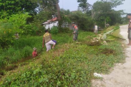 Matalensa || Kotawaringin Timur- Babinsa Koramil 1015-03/Mentawa Baru ketapang Serda Ganda bersama warga melaksanakan gotong royong membersihkan semak belukar dan membersihkan parit di Kelurahan ketap...