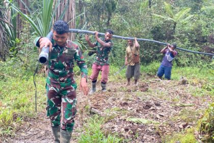 Matalensa- Distrik Okaom, Pegunungan Bintang Di bawah naungan Koops Swasembada, Satgas Pamtas Statis Yonif 751/Vira Jaya Sakti (VJS) melaksanakan program TNI Manunggal Air di Kampung Bulangkop Distri...