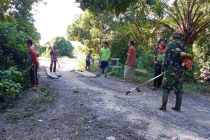 Matalensa || Kotawaringin Timur- Babinsa Koramil 1015-02/Mentaya Hilir Utara Sertu Poniman bersama Bhabinkamtibmas Polsek Bagendang melaksanakan gotong royong membersihkan semak belukar dan membersihk...