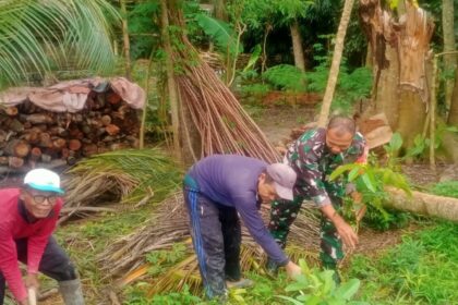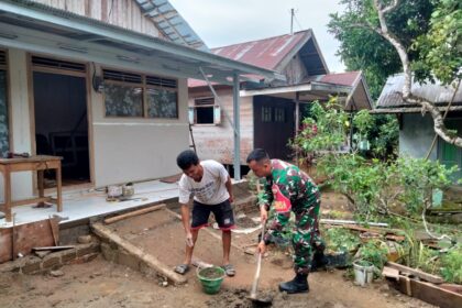 Matalensa|| HULU SUNGAI TENGAH – Babinsa Koramil 1002-02/Batang Alai Utara Kopda Rahmad Hidayat melaksanakan kegiatan membantu memperbaiki rumah warga binaan di Desa Kabang, Kecamatan Limpasu, Kabupat...