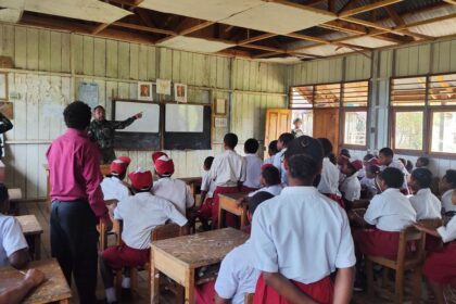 Matalensa- Tarub, Pegunungan Bintang – Bertempat di SD Inpres Tarub, anggota Satgas Pamtas RI–PNG Yonif 751/Vira Jaya Sakti (VJS) melaksanakan kegiatan Pembinaan Teritorial (Binter) berupa Wawa...