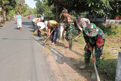 Matalensa–Blitar – Babinsa Kelurahan Tanjungsari Koramil 0808/01 Sukorejo, Serka Ebit Andiana, bersama aparat kelurahan dan warga setempat melaksanakan kerja bakti pembersihan lingkungan d...