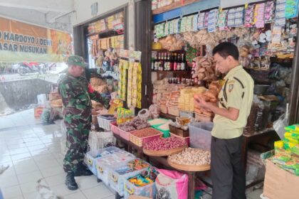 Matalensa–Surakarta – Babinsa Kelurahan Nusukan, Koramil 02/Banjarsari,Kodim 0735/Surajarta Serka Supadmo bersama dengan Security Pasar Tradisional Nusukan melaksanakan pengecekan Harga Se...