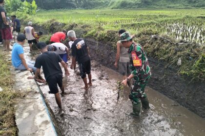 Matalensa–Blitar – Dalam rangka mendukung kelancaran sistem pengairan sawah dan menjaga kebersihan lingkungan pertanian, Babinsa Kelurahan Karang Tengah Koramil 0808/20 Sananwetan Sertu Ro...