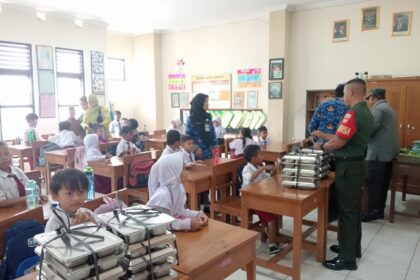 Matalensa- Surakarta, Babinsa Joyotakan Koramil 03/Serengan Kodim 0735/Surakarta Serka Sudiyono beserta Linmas Melaksanakan Pendampingan pendistribusian Makan Bergizi Gratis (MBG) di SDN 59 Joyotakan ...