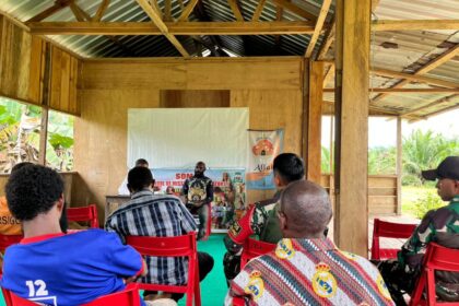 Matalensa- Iwur, Pegunungan Bintang — Pos Iwur Satgas Yonif 751/Vira Jaya Sakti (VJS) yang dipimpin Danpos Iwur Letda Inf Afrizal Sianipar menghadiri sekaligus melaksanakan rapat bersama jemaat di ger...
