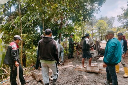 Matalensa–Madiun – Dalam upaya mendukung peningkatan infrastruktur desa, Babinsa Koramil 0803-14/Dagangan, Sertu Aan Muharyanto, bersama warga melaksanakan kegiatan karya bakti rabat jalan di Du...