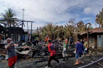 Matalensa–BARABAI – Babinsa Koramil 1002-06/Barabai bersama Bhabinkamtibmas, Dinas Lingkungan Hidup, aparat desa, Linmas, dan anggota BPD Desa Ayuang melaksanakan pembersihan puing-puing pascake...