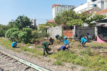 Matalensa–Surakarta – Babinsa Kelurahan Purwosari Koramil 01 Laweyan Kodim Surakarta Serka Murdianto dengan bersama Tim Saberling Kelurahan dan Linmas melaksanakan kegiatan kerja bakti pem...