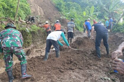 Matalensa–Blitar – Pasca terjadi tanah longsor yang menutup akses jalan penghubung antara Dusun Sumbergondo dan Dusun Celeng. Babinsa Desa Tulungrejo Kecamatan Gandusari Kabupaten Blitar P...