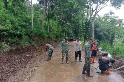 Matale—Blitar – Babinsa Koramil 0808/13 Doko bersama warga masyarakat melaksanakan kerja bakti pembersihan pasca bencana tanah longsor yang terjadi akibat hujan deras dengan intensitas tin...