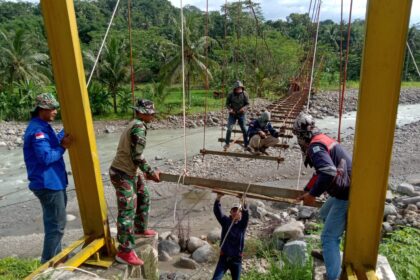 Matalensa || Wonosobo – Pengerjaan Jembatan Gantung Stamelo (Stanmelo) yang menghubungkan Dusun Melokan, Desa Kalidadap, Kecamatan Wadaslintang dengan Dusun Stana (Setana), Desa Kaliguwo, Kecama...