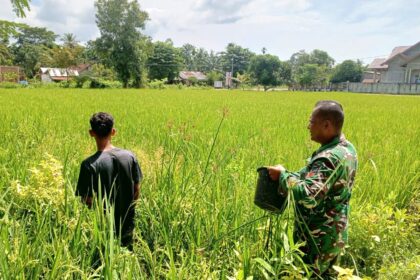 Matalensa—Aceh Utara – Babinsa Koramil 28/Pirak Timu Kodim 0103/Aceh Utara, Koptu Molana, membantu petani melakukan pemupukan padi di sawah milik Bapak Usoh, warga Desa Teupin U, Kecamatan...