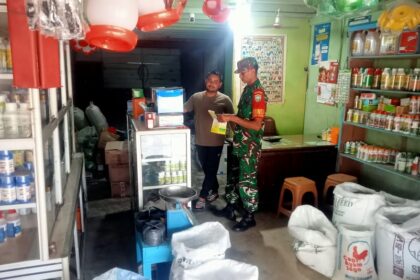 Matalensa—Aceh Utara – Babinsa Koramil 07/Meurah Mulia, Kodim 0103/Aceh Utara, melaksanakan pengecekan ketersediaan pupuk dan pestisida di kios pertanian milik warga di wilayah Kecamatan M...
