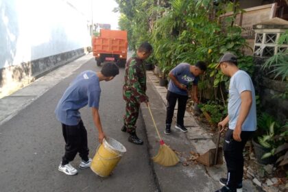 Matalensa—-Surakarta – Guna menumbuhkan semangat gotong-royong dan kepedulian masyarakat terhadap kebersihan lingkungan sekitarnya, Babinsa Kelurahan Nusukan Koramil 02 Banjarsari Kodim Su...