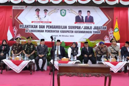 Matalensa—Kotawaringin Timur – Komandan Kodim 1015/Sampit Letkol Inf Dwi Candra Setyawan hadir dalam pelantikan dan pengambilan sumpah Jabatan dilingkungan Pemerintah Kabupaten Kotawaringi...