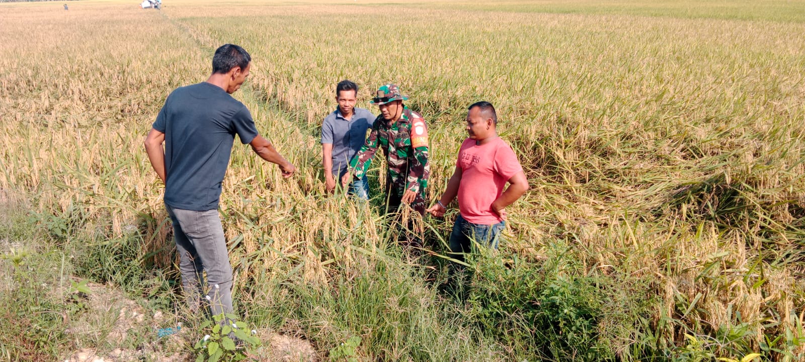 Matalensa- Aceh Utara – Babinsa Koramil 29/Langkahan, Sertu Syamsuddin, turun ke sawah mendampingi para petani meninjau kondisi tanaman padi yang mulai menguning dan siap panen di Desa Tanjung Dalam, Kecamatan Langkahan, Kabupaten Aceh Utara, Rabu (12/11/2025).
