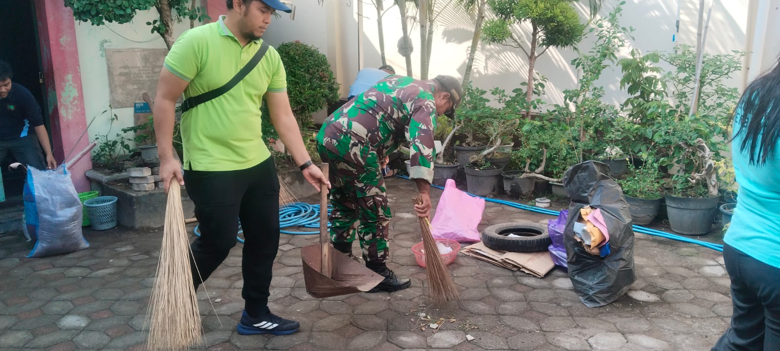 Matalensa || Surakarta, Babinsa Joyotakan Koramil 03/Serengan Kodim 0735/Surakarta Serma Rumbawa bersama staf Kelurahan melaksanakan kegiatan kerja bakti bersama di Kantor Kelurahan Joyotakan, Kecamatan Serengan, Kota Surakarta. Sabtu 20 Desember 2025, pukul 07.30 Wib