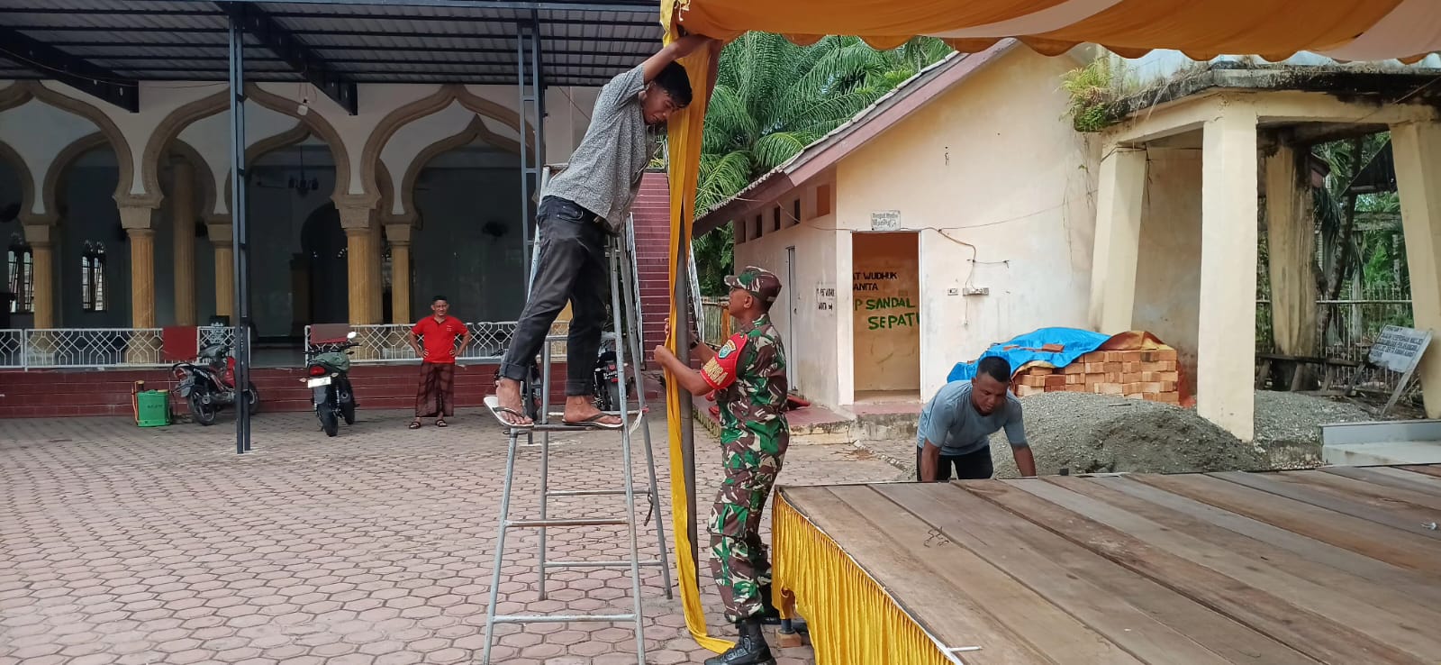 Serda Sofyan tampak membantu berbagai aspek persiapan teknis , mulai dari pemasangan tenda, pengaturan kursi, pengaturan panggung, hingga memastikan kelancaran logistik acara. “MTQ bukan sekedar lomba membaca Al-Qur’an, tapi juga momentum untuk memperkuat ukhuwah Islamiyah dan membangun karakter generasi muda yang cinta Al-Qur’an,” ujar Serda Sofyan dengan penuh semangat.