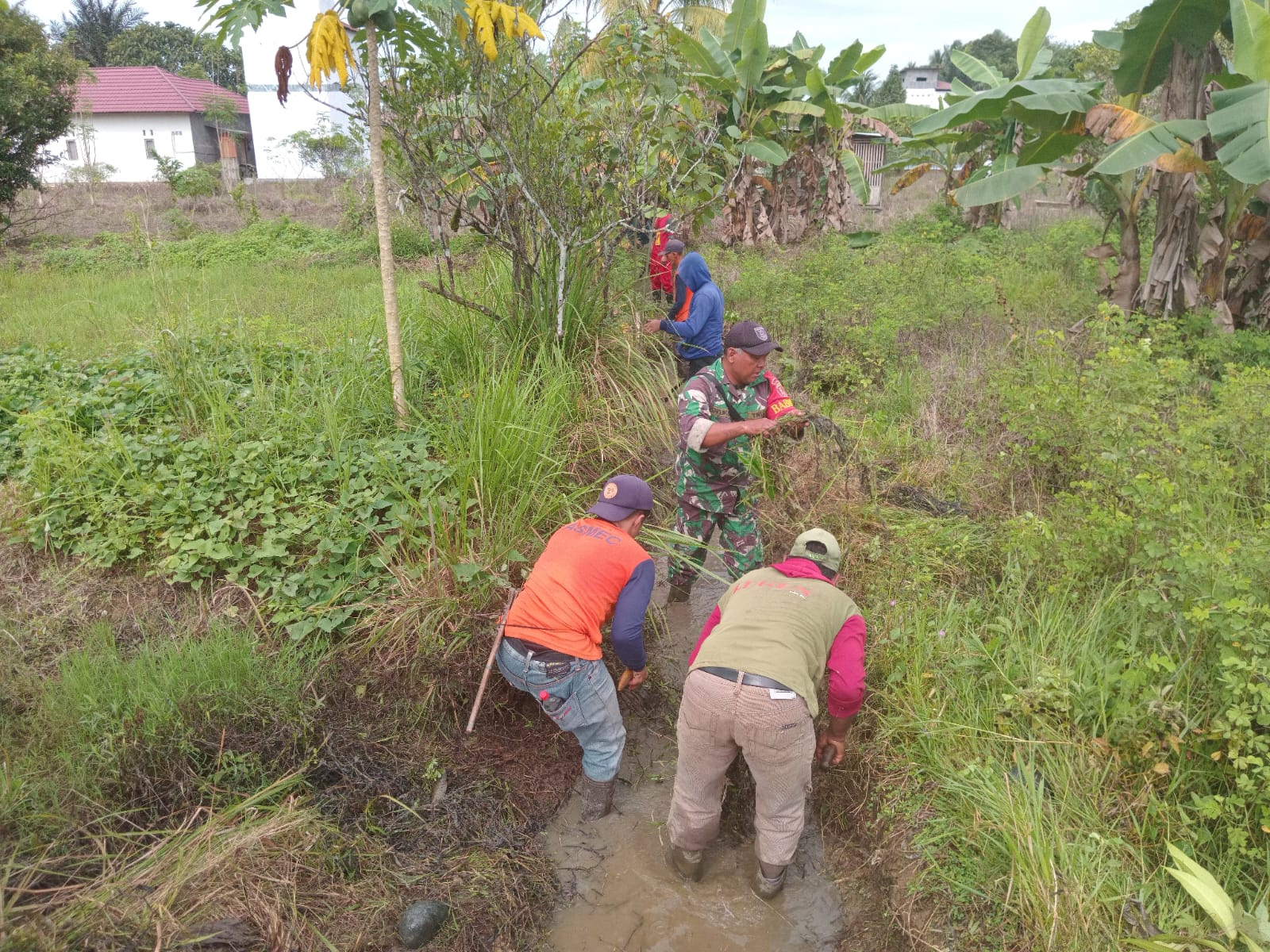 Babinsa Koramil 1002-05/Pandawan Bersama Warga Gotong Royong Bersihkan Sungai di Desa Palajau