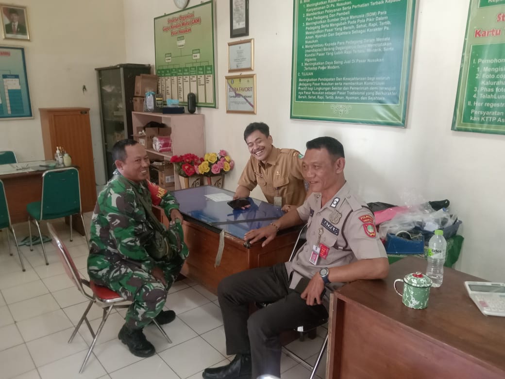 Sementara itu Bapak Suyoto menyampaikan bahwa sinergitasnya dengan Babinsa selain untuk menjaga keamanan dan memberikan rasa nyaman kepada penjual dan pembeli, juga untuk mengontrol harga-harga kebutuhan pokok yang ada di Pasar Tradisional Nusukan.