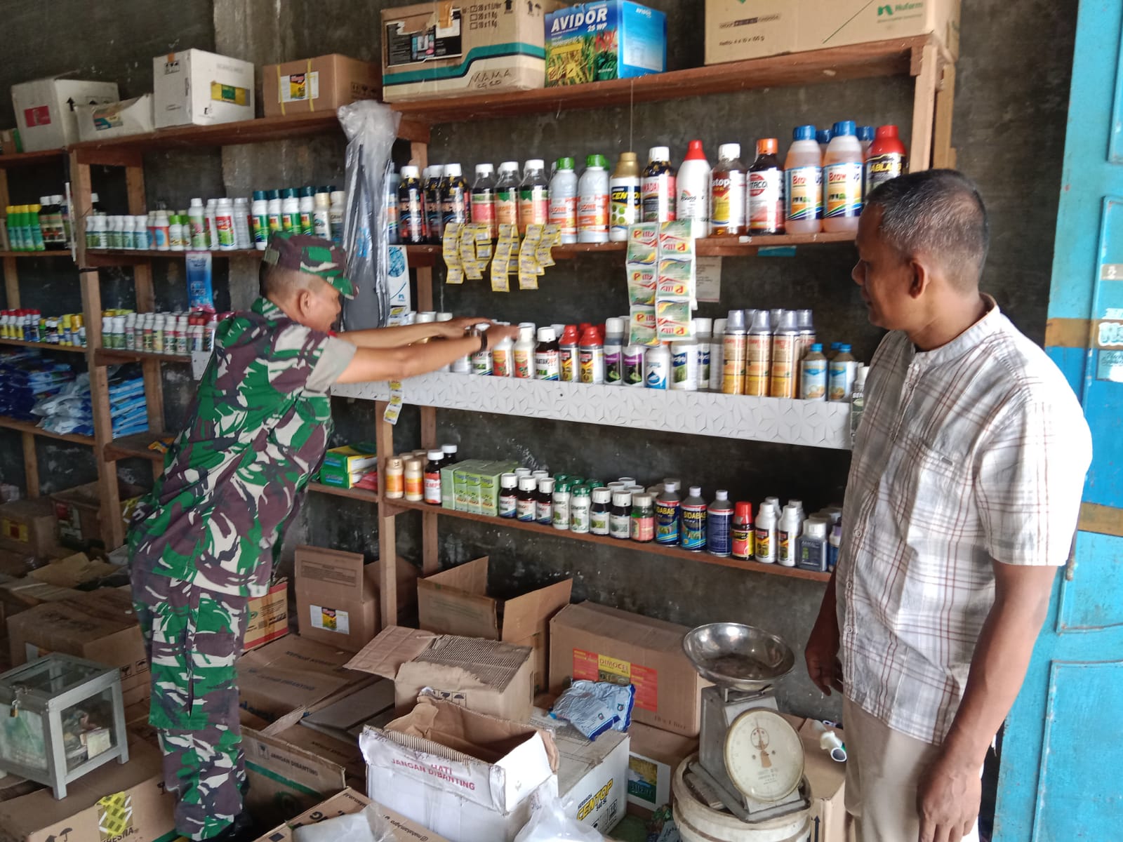 Matalensa—Aceh Utara – Babinsa Koramil 21/Paya Bakong Kodim 0103/Aceh Utara, Serma Mawardi, melaksanakan kegiatan survei lapangan terkait perkembangan harga pupuk dan racun di UD Saree Tani, Desa Tgk Di Banda Pirak, Kecamatan Paya Bakong, Kabupaten Aceh Utara, Selasa (14/10/2025). Kegiatan ini dilakukan untuk memantau ketersediaan serta stabilitas harga sarana pertanian di wilayah binaan.
