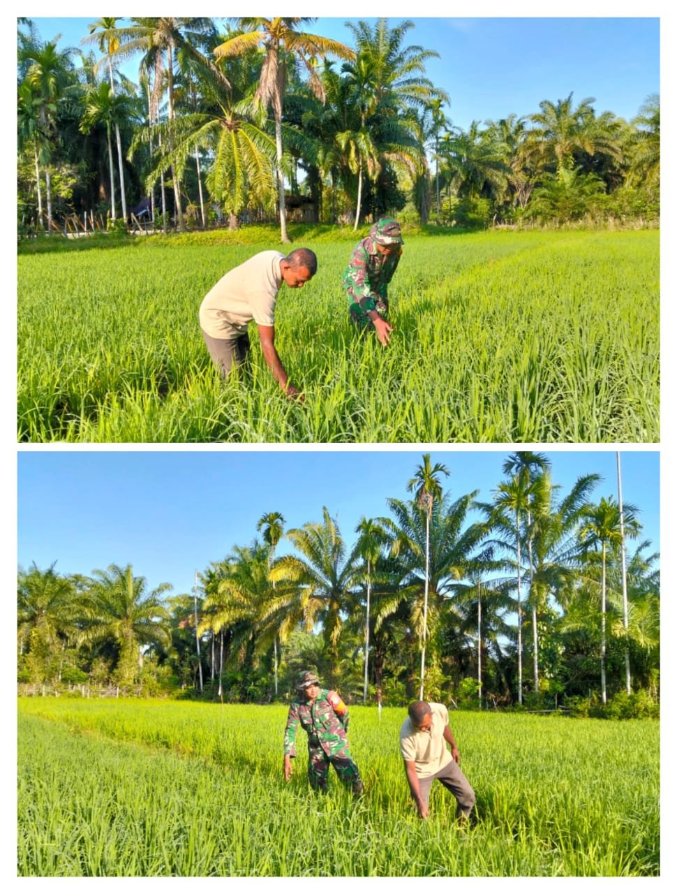 Matalensa || Panton Reu – Koptu Abdan, Babinsa Posramil 12/Panton Reu Kodim 0105/Abar, melaksanakan kegiatan pendampingan kepada para petani dengan membantu mengecek pertumbuhan tanaman padi di Gampong Meutulang, Kecamatan Panton Reu, Kabupaten Aceh Barat. Kegiatan ini merupakan bagian dari upaya TNI AD dalam mendukung program ketahanan pangan nasional serta meningkatkan hasil produksi pertanian masyarakat.Minggu,25/01/2026.