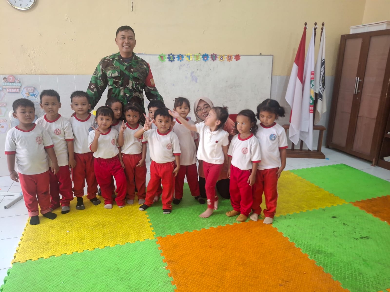 Matalensa || Surakarta, Babinsa Danukusuman Koramil 03/Serengan Kodim 0735 Surakarta Serda Tito sambangi Murid murid Pendidikan usia dini Kartini Jl Sri Kuncoro No 11 Danukusuman Serengan Kota Surakarta, Senin 15/12/2025 pukul 09.00 WIB.