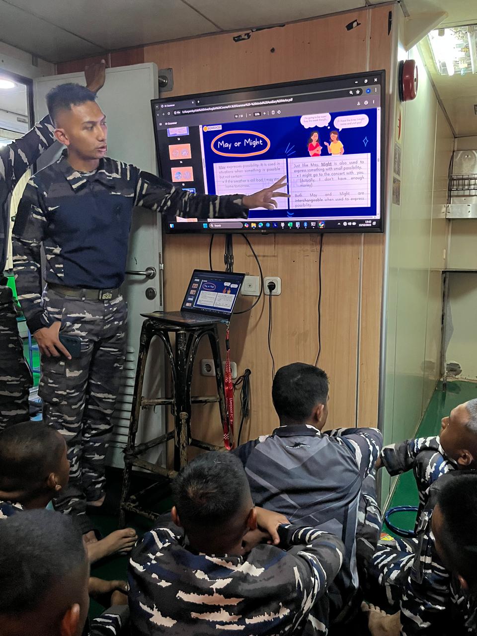 Matalensa || KRI Halasan-630 Satkat Koarmada I menggelar kegiatan pembelajaran bahasa Inggris bagi seluruh perwira dan anggota Satuan Kapal Cepat Koarmada I pada Rabu, 26 November 2025, bertempat di Long Room kapal. Materi diberikan oleh Letda Laut (P) Muhammad Adhy Makayasa dengan empat fokus utama, yakni penguasaan tenses dan penerapannya, pemahaman modul bahasa Inggris, kosakata harian yang digunakan di kapal, serta kemampuan memahami isi teks berbahasa Inggris.