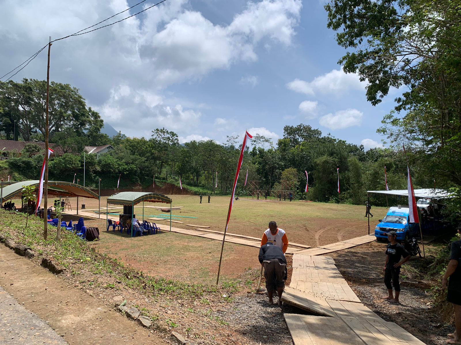 “Berbagai persiapan hari ini kita laksnakan diantaran pemasangan Baliho, umbul-umbul, panggung, penataan+ meja dan kursi tamu, display dan sebagainya, anggota Satgas juga turut membantu melaksanakn bersih-bersih di lokasi, hal-hal yang perlu sudah disiapkan matang dan sudah dikoordinasikan dengan instansi terkait, serta masyarakat setempat untuk acara besok,” terang Peltu Among selaku Bati Bhakti TNI.
