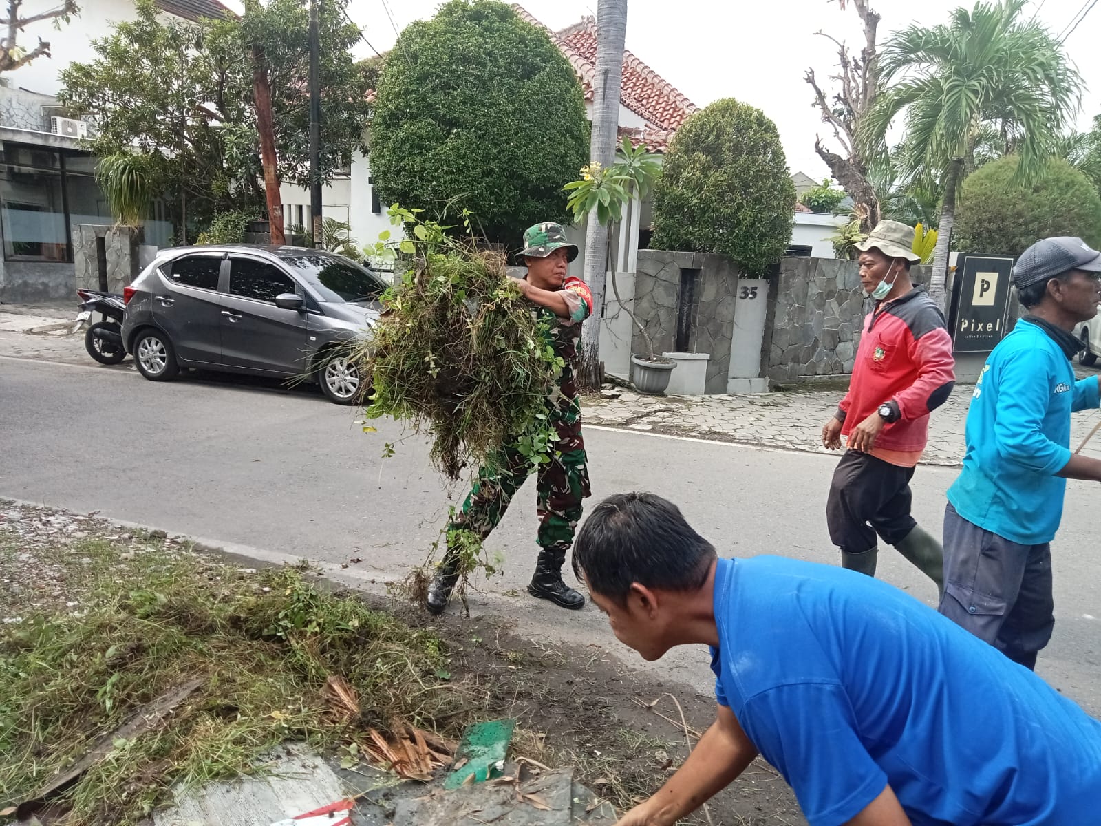 Matalensa- Surakarta – Bertempat di Jl. Satrio Wibowo Barat Kp.Purwotomo Kelurahan Purwosari Kecamatan Laweyan, Babinsa Kelurahan Purwosari Koramil 01 Laweyan Kodim Surakarta Serka Murdianto bersama dengan warga masyarakat tergerak hatinya memberikan contoh yang baik dengan kerja bakti untuk membersihkan lingkungan rumah kosong yang atapnya roboh dan ditumbuhi rumput liar, Kamis (26/02/2026).