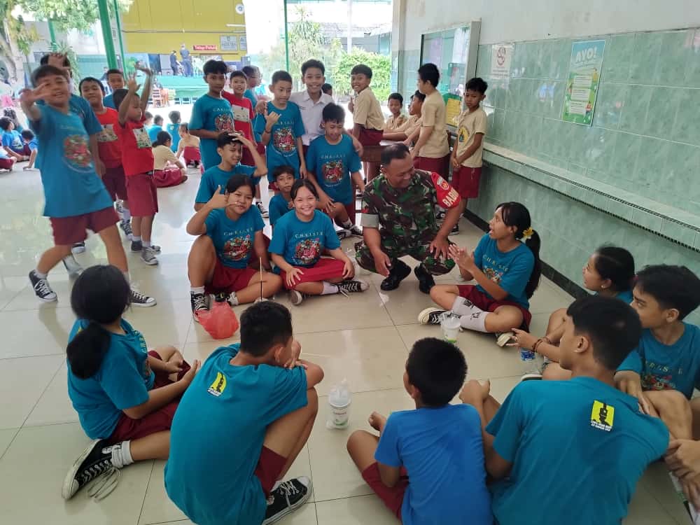 Murid SD Warga semangat dan antusias mendengar arahan semangat belajar dari Koptu Devid.