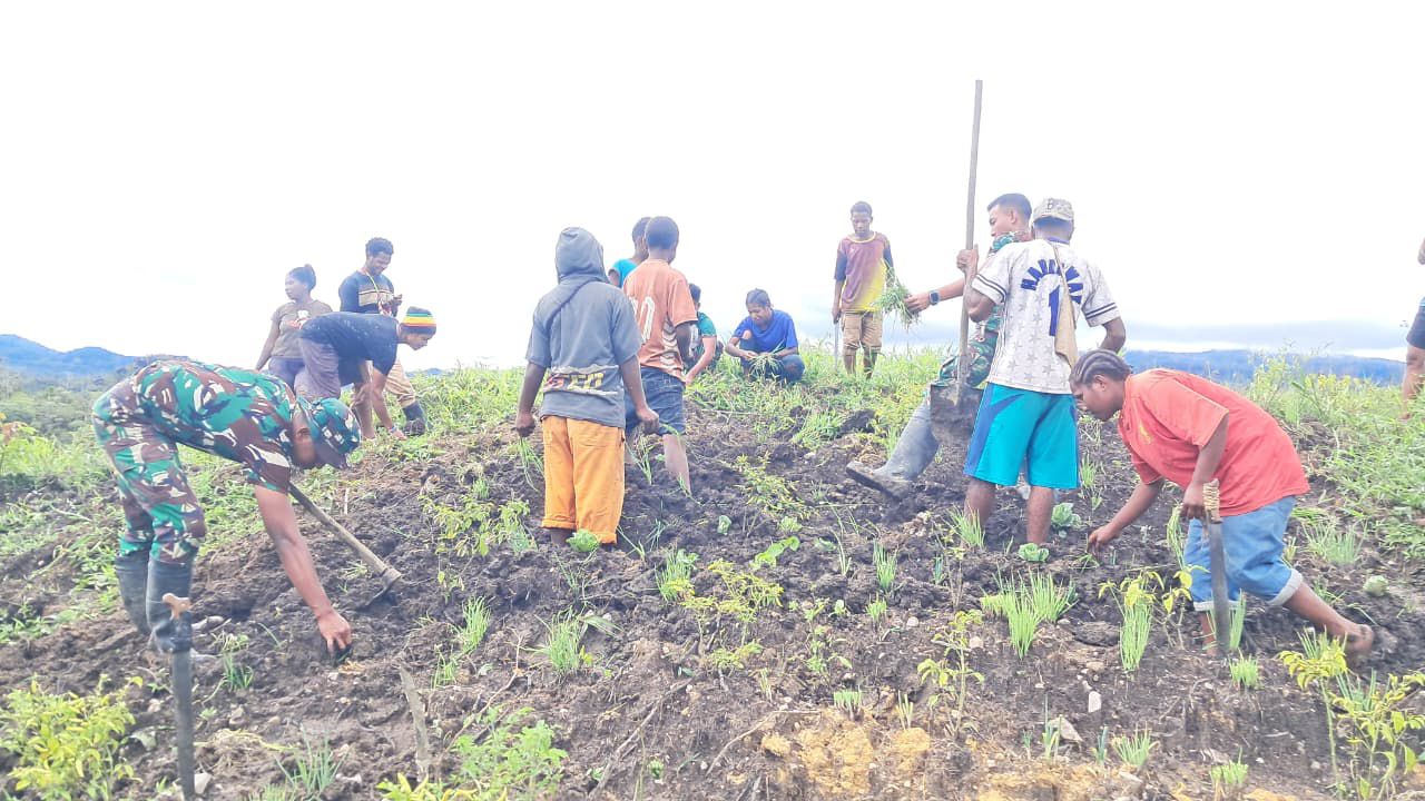 Matalensa- Parim, Pegunungan Bintang-Pos Parim Yonif 751/Vira Jaya Sakti (VJS) Satgas Swasembada bersama masyarakat melaksanakan kegiatan bercocok tanam sebagai upaya menumbuhkan ketahanan pangan sekaligus mendorong kemandirian ekonomi warga. Kegiatan ini bertujuan mengajarkan pemanfaatan lahan agar hasil panen dapat memenuhi kebutuhan keluarga dan berpotensi dijual sebagai tambahan penghasilan. (Senin,2/3/2026).