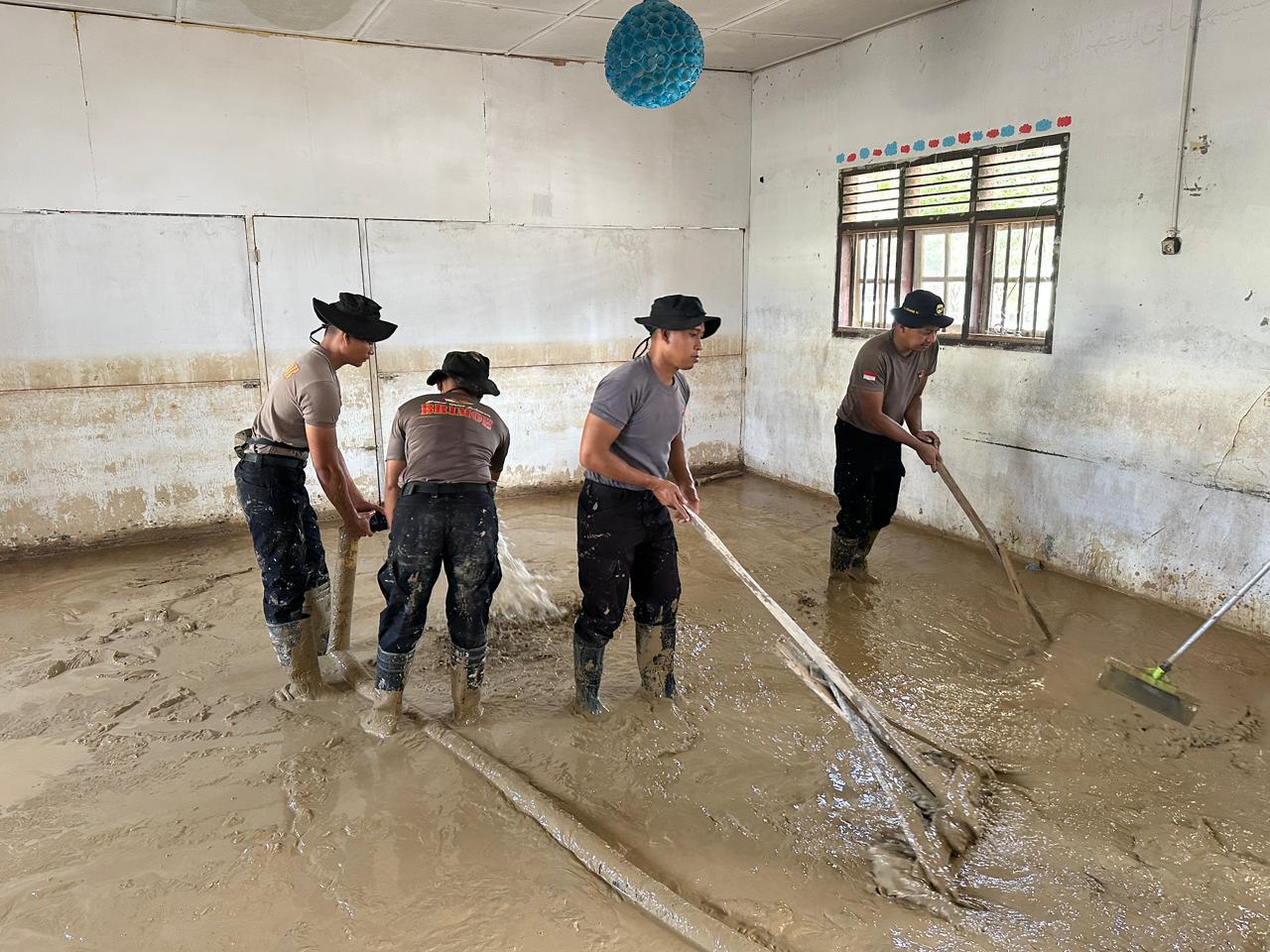 “Personel kami hadir tidak hanya untuk tugas pengamanan, tetapi juga membantu percepatan pemulihan pascabencana. Lingkungan sekolah harus segera bersih, agar proses belajar bisa kembali normal,” ungkap Kombes Kholid.