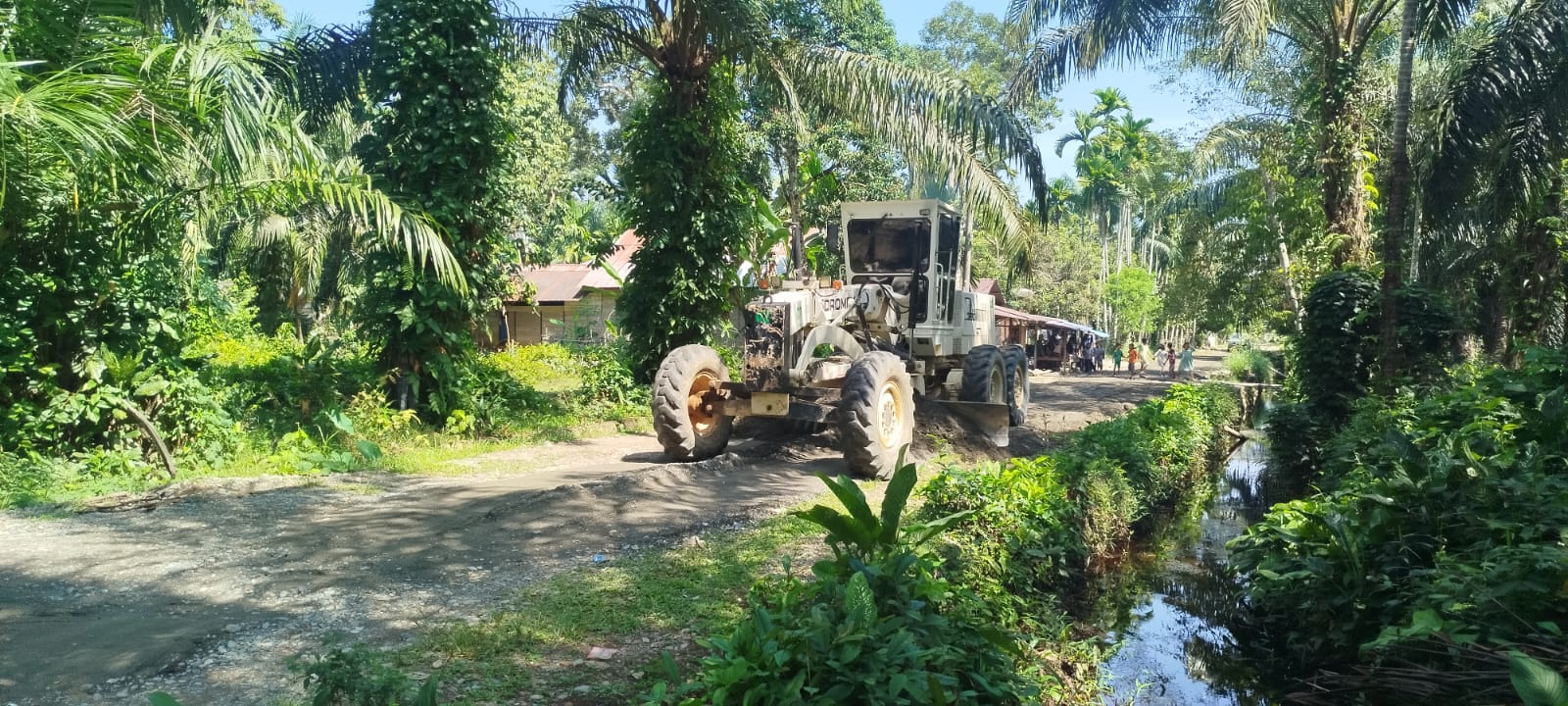 Di lokasi pengerjaan, greder tampak hilir mudik meratakan material sirtu (pasir batu) sekaligus melebarkan badan jalan agar lebih kokoh dan nyaman dilalui. Kehadiran alat berat tersebut juga sangat membantu percepatan progres pembangunan jalan yang menjadi akses vital bagi masyarakat setempat.