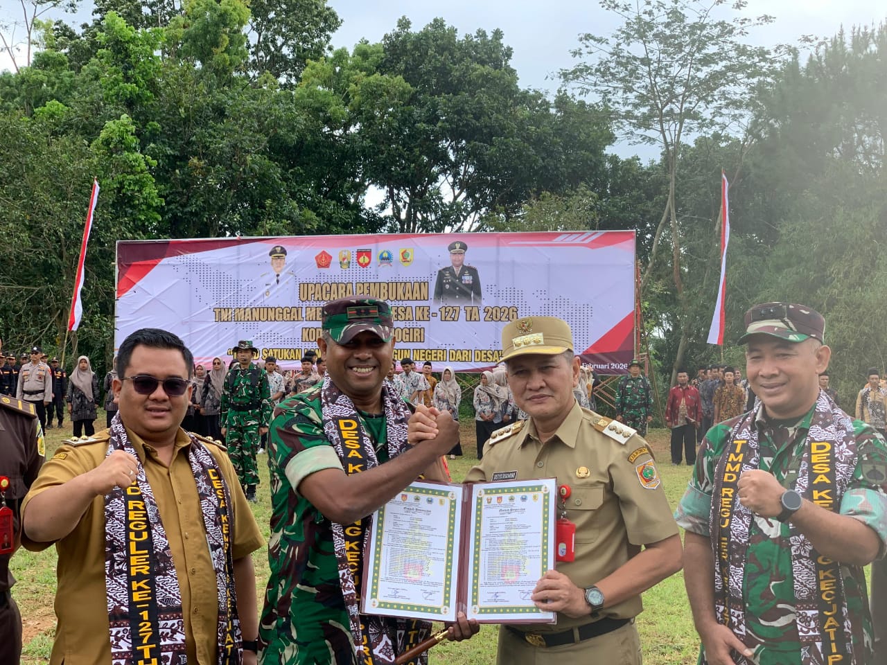 Bupati Wonogiri Setyo Sukarno secara resmi membuka Upacara Pembukaan TMMD Reguler Ke-127 Tahun 2026 bertempat di lapangan Desa Kembang Kecamatan Jatipurno, Selasa (10/2/2026).