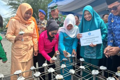 Matalensa- Lombok Utara – Semangat pelestarian lingkungan berpadu dengan pemberdayaan perempuan dalam kegiatan Launching Penanaman Terumbu Karang di Pantai Impos, Desa Medana, Kecamatan Tanjung, Kabup...
