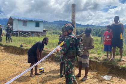 Matalensa- Denom, Pegunungan Bintang – Pos Denom Satgas Pamtas RI–PNG Yonif 751/Vira Jaya Sakti (VJS) melaksanakan kegiatan Binter berupa perbaikan lapangan voli di kampung binaan. Dipimpin Danp...