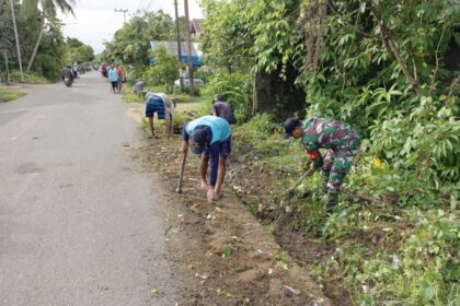 Matalensa || BARABAI – Babinsa Koramil 1002-05/Pandawan bersama masyarakat Desa Pandawan melaksanakan kegiatan gotong royong pembersihan saluran drainase di kanan kiri jalan utama desa, Sabtu (6/12/20...