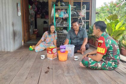 Matalensa || Kotawaringin Timur – Babinsa Koramil 1015-01/Mentaya Hilir Selatan Kopda Sandi melaksanakan Komunikasi Sosial (Komsos) bersama masyarakat wilayah binaan di Desa Makarti Jaya, Kecama...