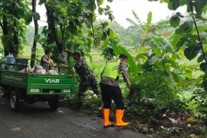 Matalensa- Boyolali. Koramil 13/Nogosari Kodim 0724/Boyolali bersama Anggota Polsek Nogosari dan masyarakat melaksanakan kerja bakti pembersihan sampah di sekitar jembatan Kali Miri, Desa Tegalgiri, K...